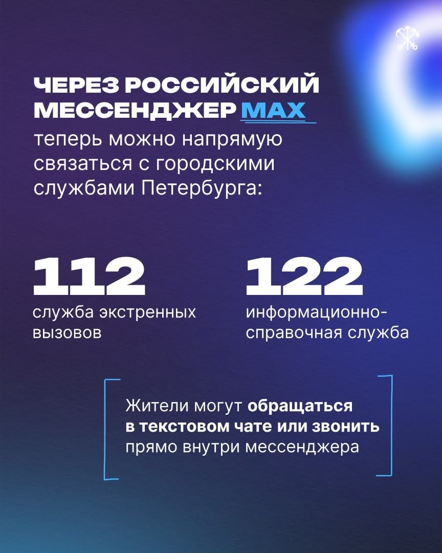 «Пилот уже запущен: в MAX созданы аккаунты «Служба 112 Санкт-Петербурга» и «Информационно-справочная служба Санкт-Петербурга «122», с которыми заявители смогут общаться в текстовом чате или звонить прямо внутри мессенджера. Дальше функционал будет расширен.