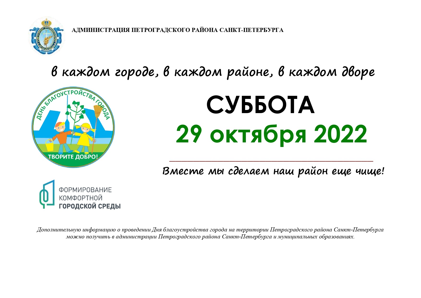 ИНФОРМИРУЕМ ВАС О ПРОВЕДЕНИИ СУББОТНИКА !
