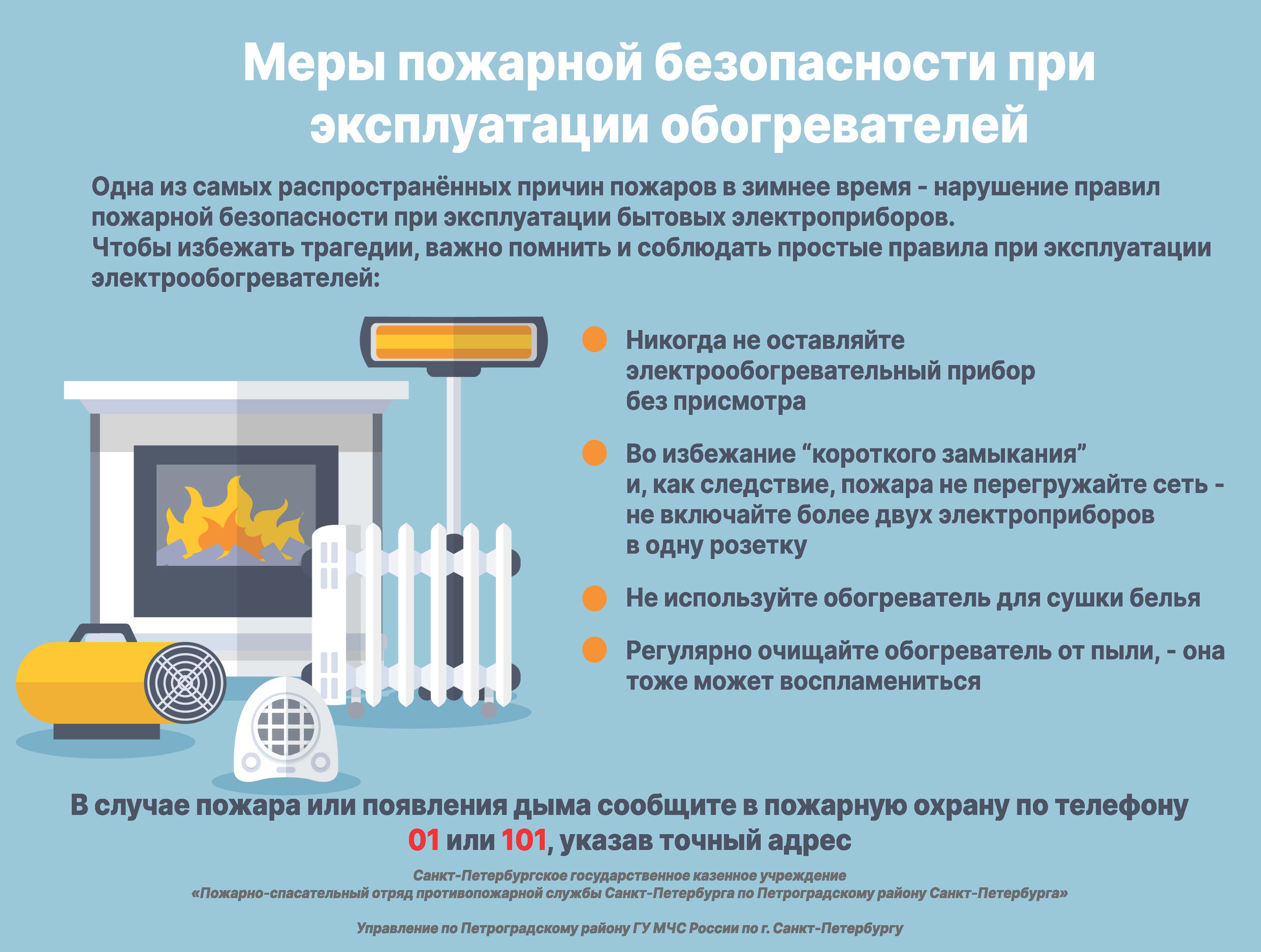 СПб ГКУ «ПСО Петроградского района», Управление по Петроградскому району ГУ МЧС России информирует о мерах пожарной безопасности при эксплуатации обогревателей.