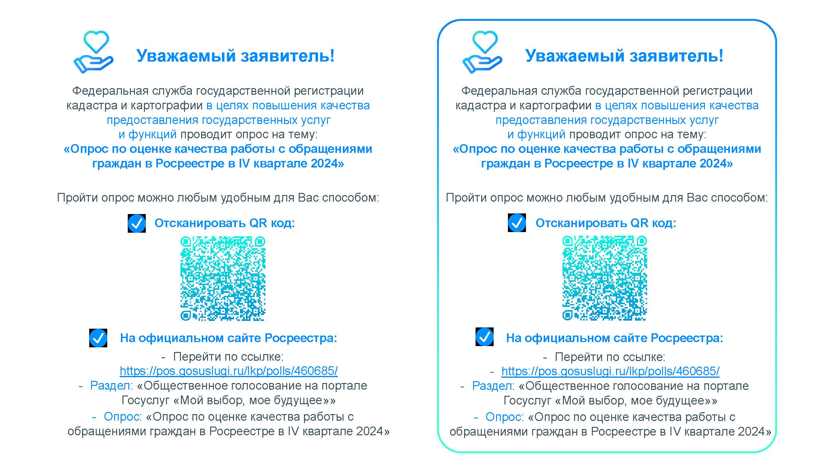 Уважаемые наши жители, просим пройти опрос по оценке качества работы с обращениями граждан в Росреестре.